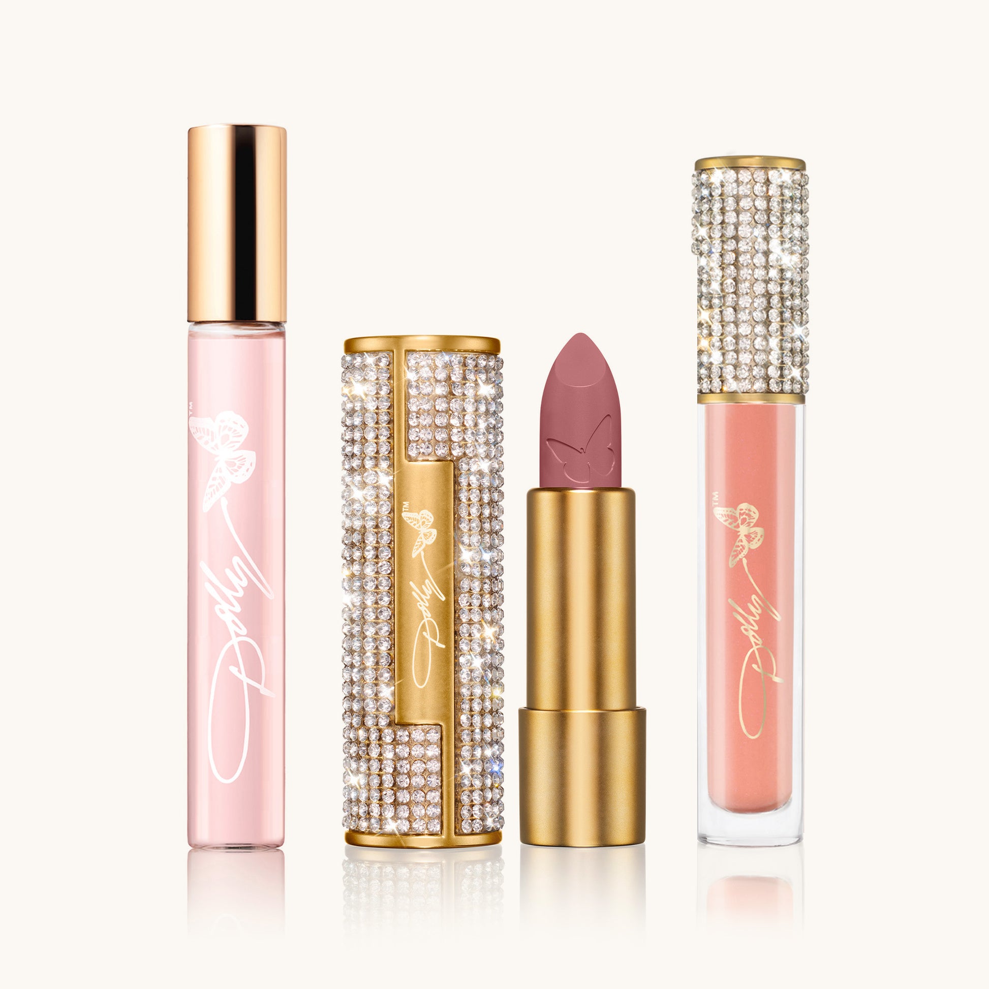 The bright fruited and floral notes of her Scent from Above travel spray are pure elation: pear layered with peony and orchid with amber in sweet harmony. It brings on a smile only made sweeter with her Rosebud and Rose Petal lipstick and gloss. So sweet, in fact, you’ll want to share it – and this set – with anyone you love.