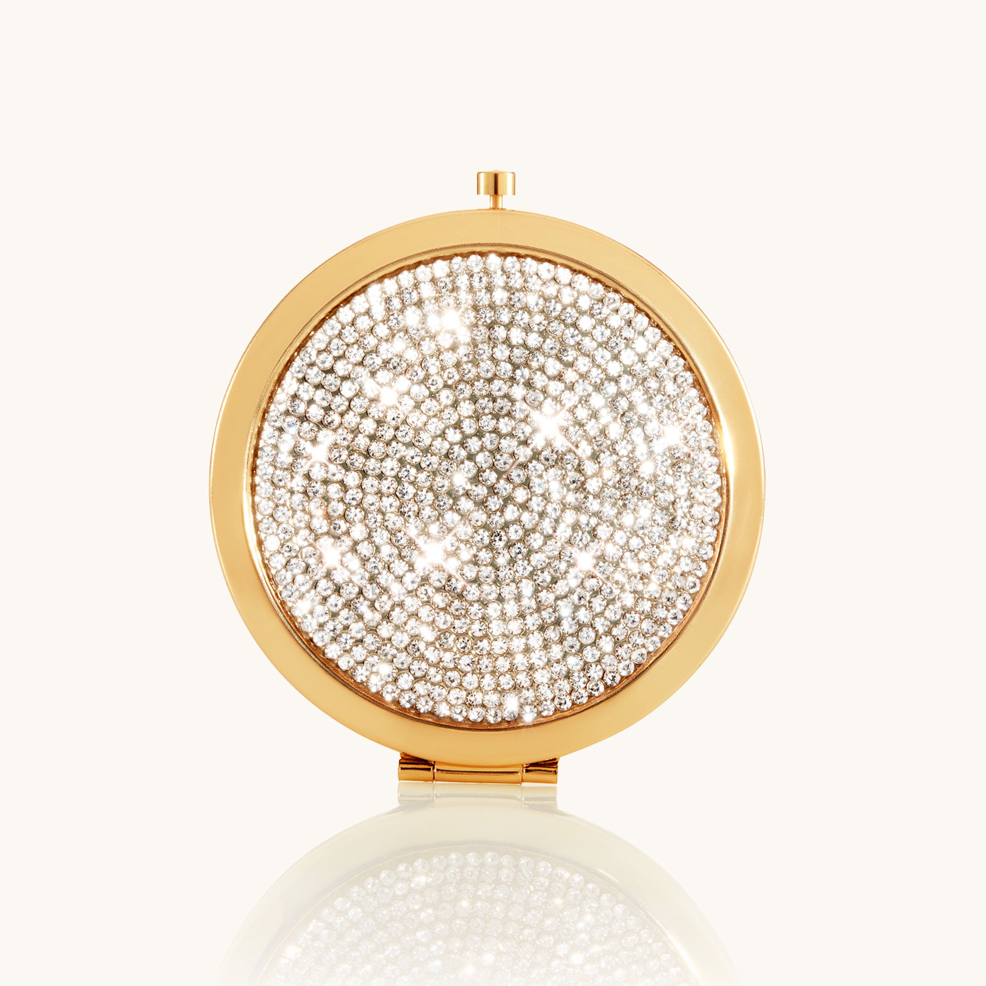 “I feel glamorous on the inside, so I want to look like it on the outside.” Radiant with rhinestones on a gold-colored exterior, this compact mirror is almost as glamorous as the face it reflects! Keep this compact mirror on hand for on-the-go touchups and be sure to always love the person in the mirror.